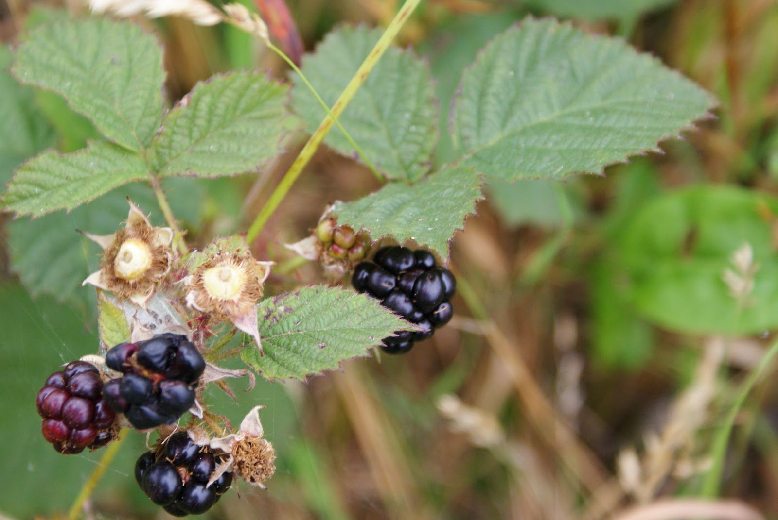 These spiky thistle flowers are lovely contrast with the clusters of yellow. |